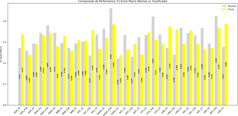 No total, a fuzzificação não foi um upgrade claro em performance geral: ela ajudou quando o benefício era ter um modelo mais “corajoso” em identificar regimes e capturar alta, mas atrapalhou ao aumentar o risco de erros com direção errada em cenários de queda, o que piora a qualidade econômica do sinal. Em resumo: o fuzzy parece trocar parte da “prudência neutra” do contínuo por mais direcionalidade e isso só vale a pena se o projeto controlar esses erros críticos (especialmente de queda para alta).