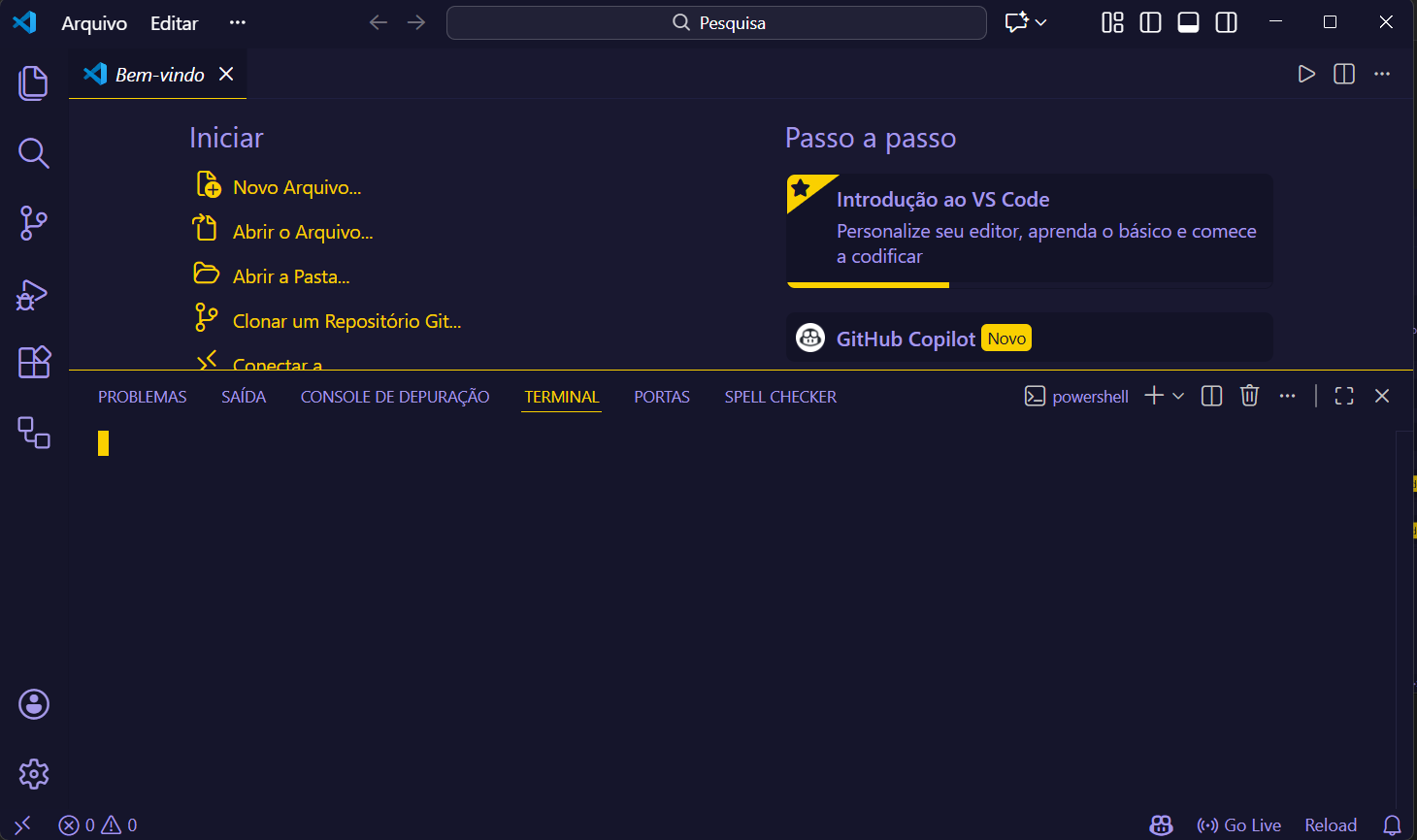 1- Lembra do VsCode? Ele entra em cena novamente agora, se você fechou abra ele novamente ou volte para ele se deixou aberto;