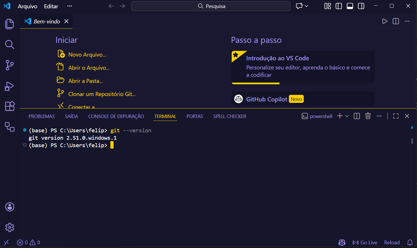 3- Vamos checar se o git está realmente instalado, use esse comando no console: