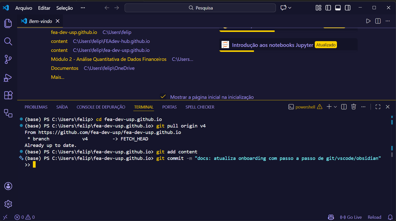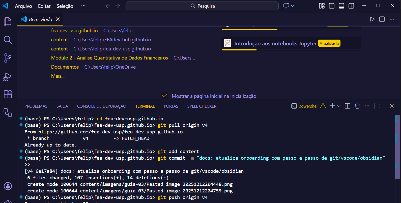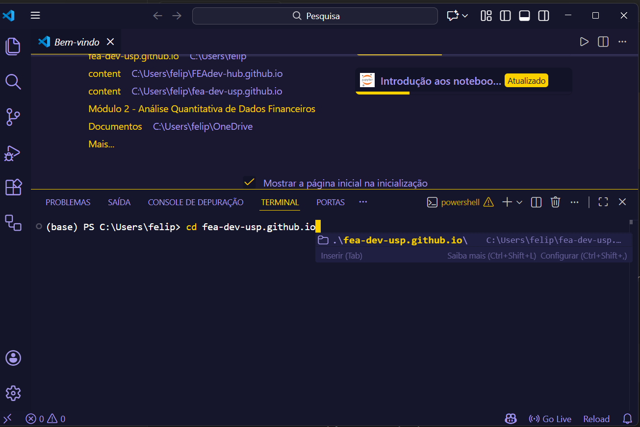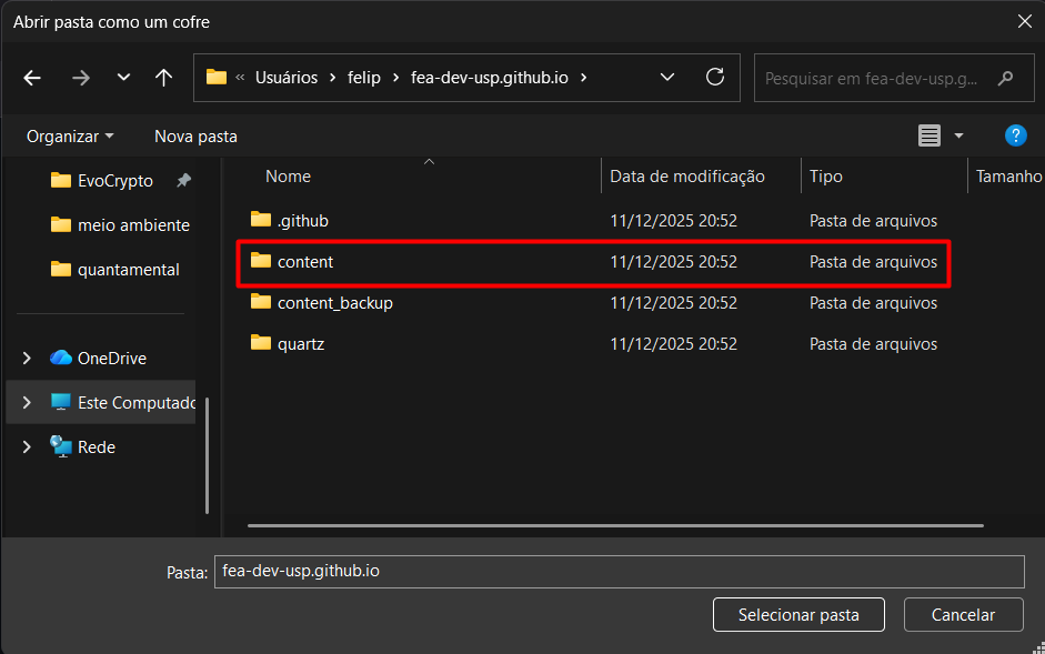 9- Dentro da pasta do seu usuário, procure a pasta com o nome ‘fea-dev-usp.github.io’ e clique nela;