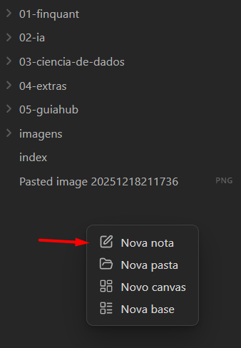 ou na barra cinza lateral com o botão direito e selecionar ‘Nova nota’