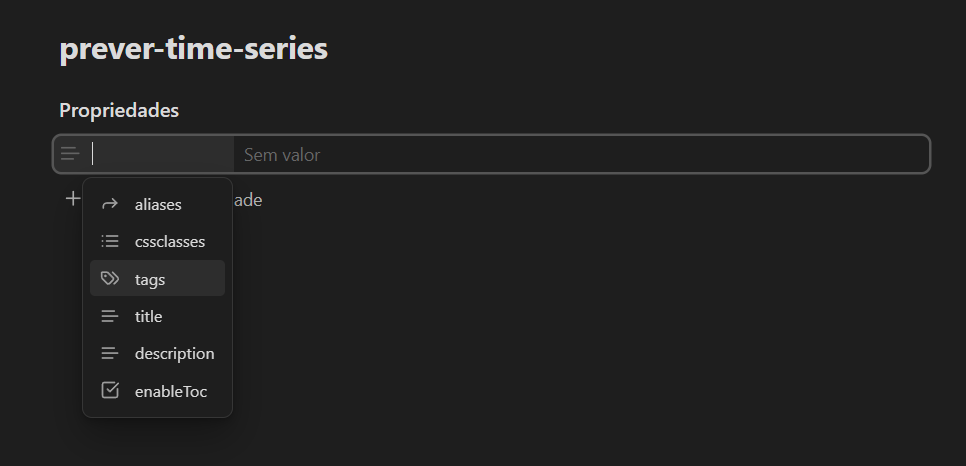 2- Com sua nota criada, você verá ‘Sem Título’ no campo superior da página, esse não será o nome utilizado que será visível lá da página do Hub na web! Ele servirá como uma forma de organização dentro aqui do Obsidian, coloque algo que envolva o seu projeto.